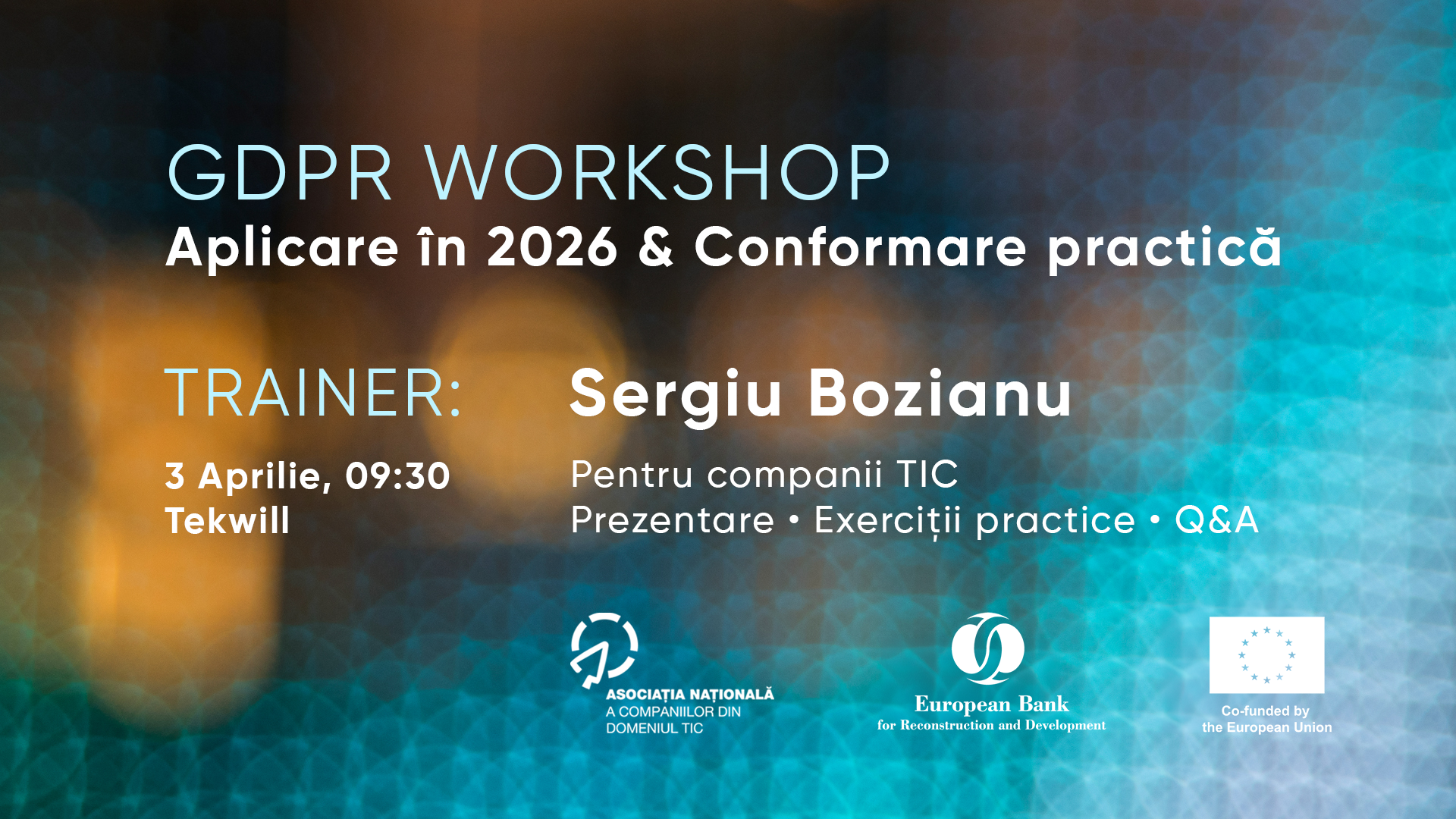 Evenimentul este realizat cu susținerea Băncii Europene pentru Reconstrucție și Dezvoltare (BERD), cu contribuția financiară a Uniunii Europene, și are drept scop sprijinirea companiilor în procesul de adaptare la noile cerințe privind protecția datelor.